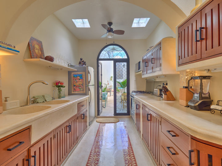 A generous entry hall with arched doorways and local art welcomes you into the house, which has 2 spacious bedrooms, each with ensuite bathrooms, king-sized beds and cotton linens. A comfortable living room with patio access separates the bedrooms allowing privacy. The bright, well-equipped galley kitchen adjoins the dining room and opens onto the courtyard. Open and covered terraces around the private pool offer spaces for lounging, working or dining comfortably in small groups in sun or shade. Additional private workspace in the primary bedroom. A/C and ceiling fans are in all common rooms and bedrooms, as well as ceiling fans under the covered terraces. 2 blocks to Parque de Santa Ana, 3 blocks to Paseo de Montejo, 4 blocks to restaurants on corredor gastronómico on calle 47. There's a garage with an automatic door suitable for a smaller car, and free on-street parking (though a car is not needed to get around).